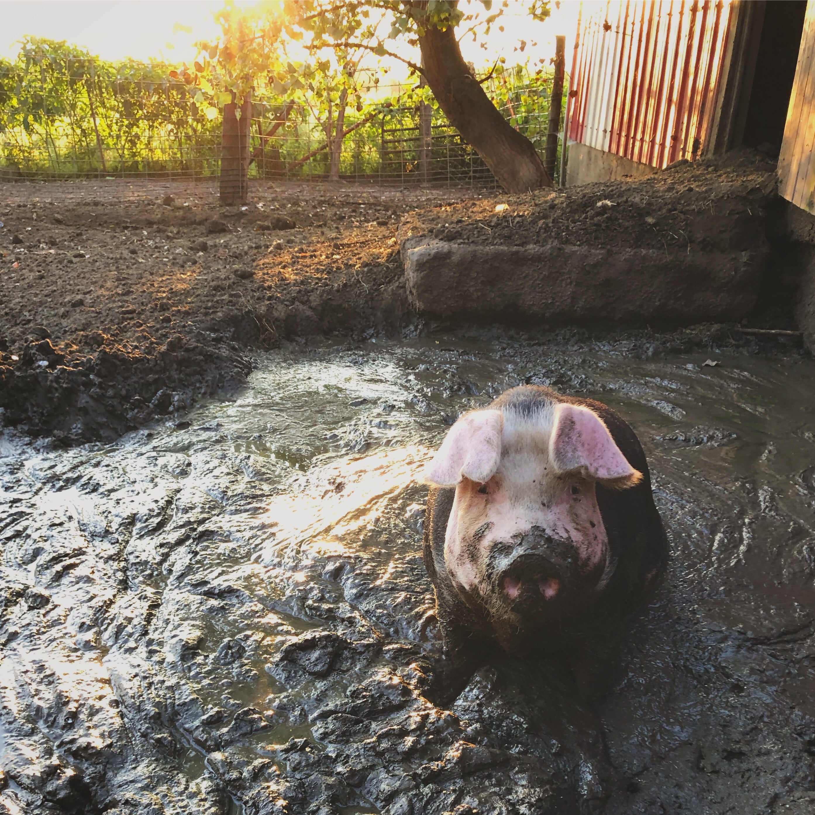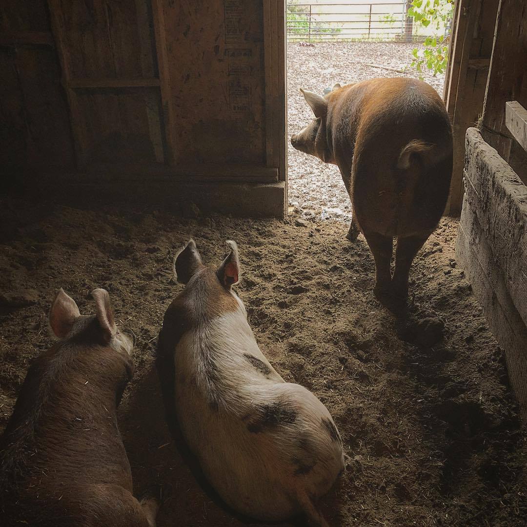 Our naturally raised pigs get year-round access to the outdoors and a dirt floor area in the barn. They are grow fat, happy, and are one of our most entertaining livestock animals to hang out with -when they're not napping!